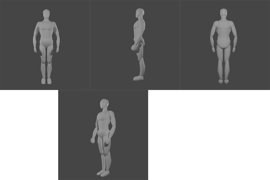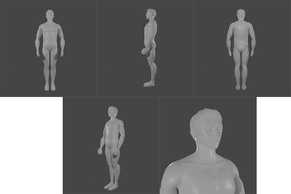 Depois comecei a fazer a blocagem do personagem pra ter já uma base pra modelagem, essa parte eu fiz no Blender.
