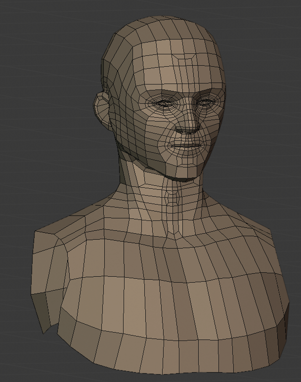 Essa lista de elementos e fazer um esboço, mesmo que tosco, me ajudou a direcionar no andamento do projeto. Com isso eu consegui finalizar a roupa. Antes eu fiz a retopologia do rosto.